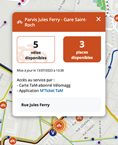 Cliquez sur une des pistes cyclables présentes sur la cartographie pour afficher le détail.